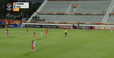 4月15日19点,2022亚冠F组首轮山东泰山与大邱FC的比赛,在泰国武里南的武里南城市体育场进行,上半场比赛结束,山东暂时0-3落后。
