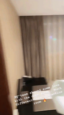 莫兰德拍摄了球队给自己提供的超大套房,感谢了球队给自己提供的良好条件,并感慨比隔离酒店的房间好太多了。