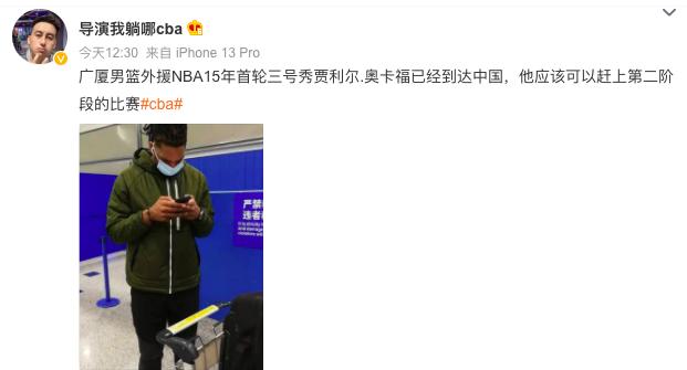 北京时间1月2日,据篮球博主“导演我躺哪CBA”爆料,前NBA球员贾希尔-奥卡福已经抵达中国,并且晒出了他在机场的照片。