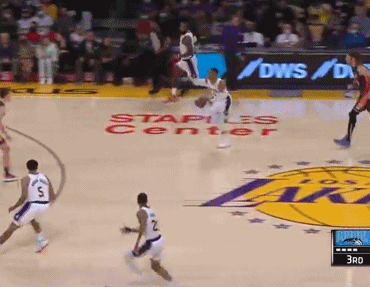 同时,在今天的比赛中,尽管浓眉哥缺阵,但是詹姆斯仍然与威少拥有巧妙配合,詹姆斯也是霸气扣篮。