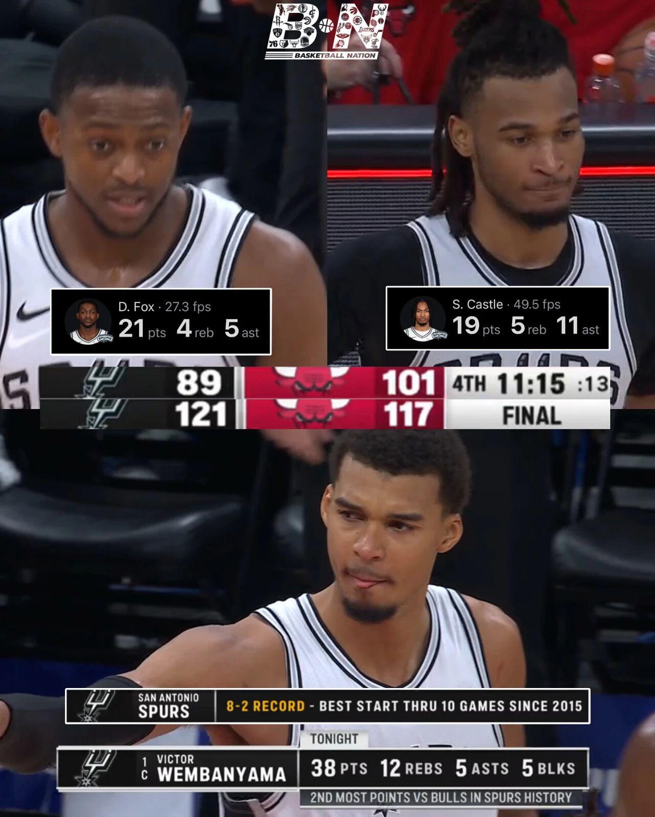 在这个助攻之后,马刺吹响了反击号角,这才有了文班亚马末节独砍18分,帮助马刺逆转公牛的表演。