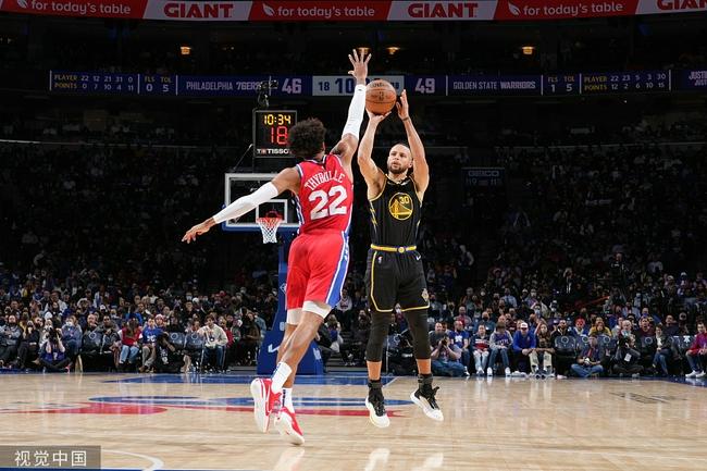 “大帝”恩比德为76人拿下了26分9个篮板,托比亚斯-哈里斯14分7个篮板,泰尔斯-马克西14分,塞斯-库里10分。