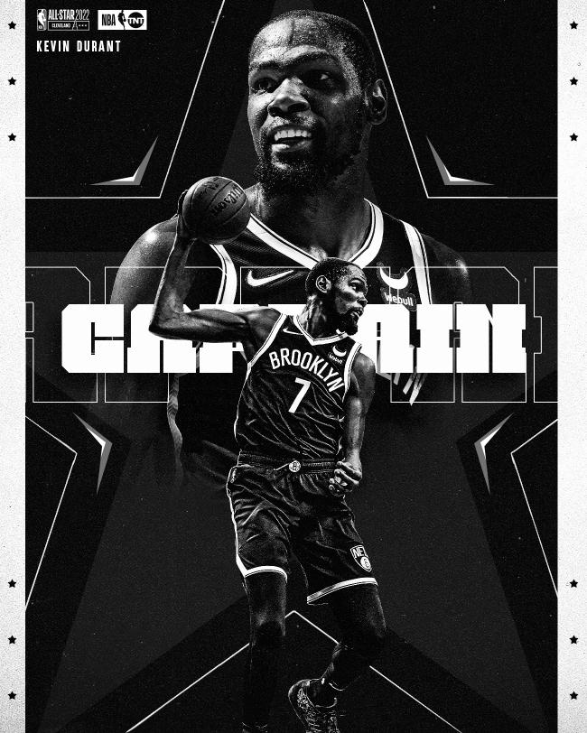 杜兰特入选东部首发阵容,并是票数最多的球员,连续两年成为东部队长。