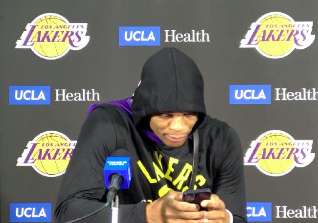 湖人在交易截止日后的首次正式训练后举行了媒体公开采访,威少参加并接受了采访。