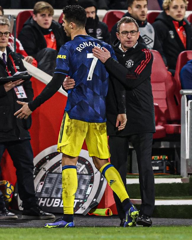 本轮英超补赛,曼联3比1客场战胜布伦特福德。C罗第71分钟被换下,显得不太高兴。